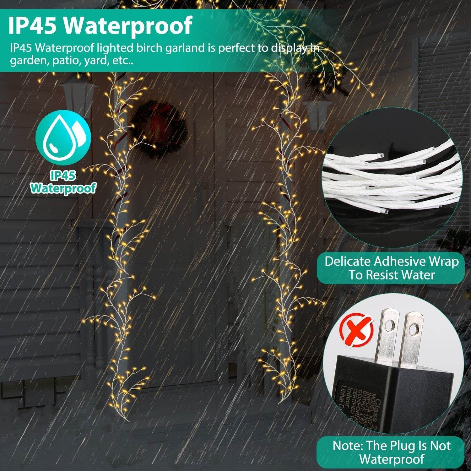 - *8 Lighting Modes & 6Hrs Timer*: Equipped with total 144Pcs LED beads,7.87ft total light string and 8 lighting modes,the Lighted Birch Garland can emit romantic warm white lights to create a lovely atmosphere for your home on various holidays and festivals. Besides,timer function allows it to work 6 hours and turn off automatically for 18 hours,then auto turn on again cyclically. No need to turn it on manually. Just plug in and enjoy a bright vacation night with your family!