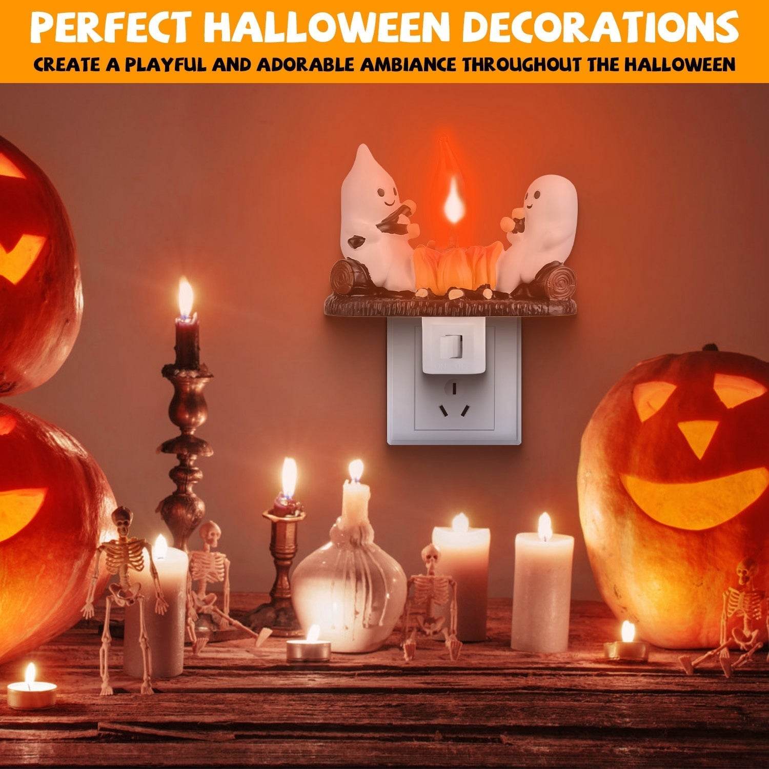 - *Perfect Halloween Decoration*: This ghost campfire flickering night light is not only ideal for Halloween decorations,but also perfect for creating a playful and adorable ambiance throughout the entire fall season. From children who love all things spooky to friends and family members with an eye for charming decor,this LED spooky nightlight is surely a perfect gift!