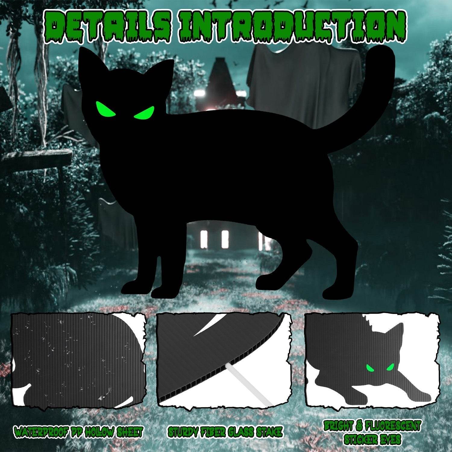 - * Easy Set-Up *: Simply insert the fiber glass stakes into the round hole at the bottom of the Halloween yard sign,then insert it into the earth in your yard/garden to decorate your Halloween. For Cat Yard Sign,you need to stick the fluorescence sticker on the cat yard sign first.