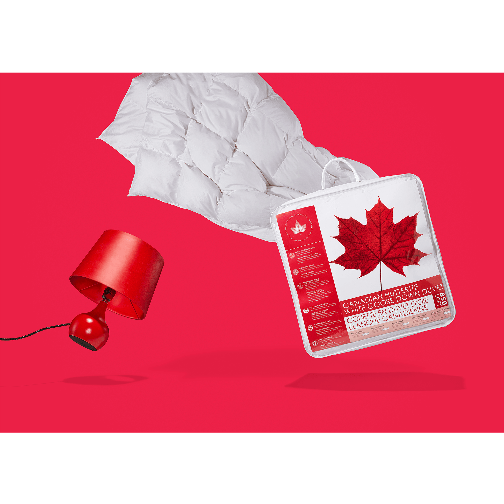 This goose down duvet is made with care in Canada with Canadian fill. The shell is 500 thread count cotton – soft and quiet. The shell is filled with 850 loft goose down farmed by Hutterites in Alberta, Canada. Down fill is soft and luxurious, made up of tiny, fluffy clusters. The fill is very high loft, which means it is high quality and very warm per ounce. This is why you’ll find this duvet is very lightweight. Just a little bit of fill goes a long way in terms of warmth!