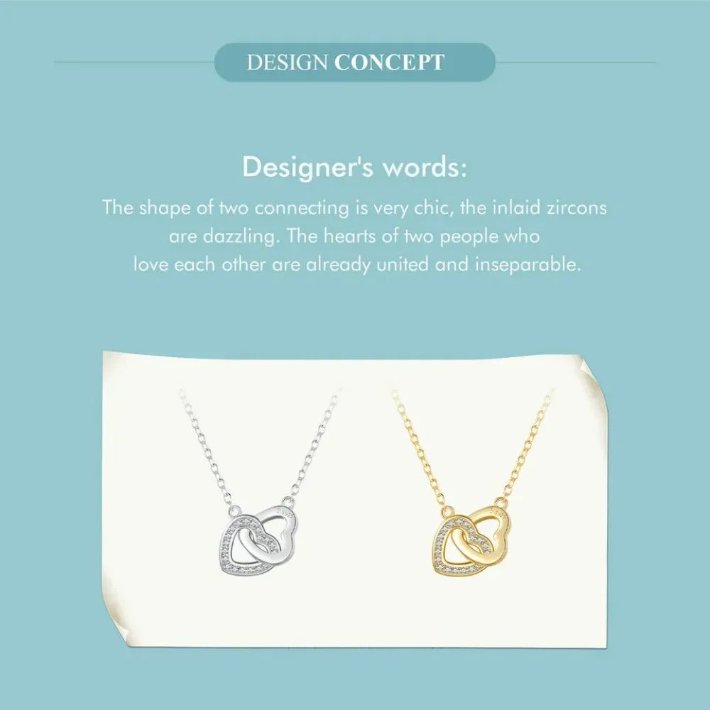 Exquisite 925 Sterling Silver Connected Heart Pendant Necklace