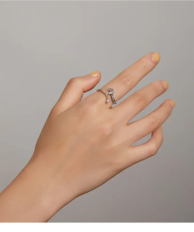 925 Sterling Silver Rainbow Butterfly Ring for Women - Adjustable Open Ring with Colorful Zircon Stones
