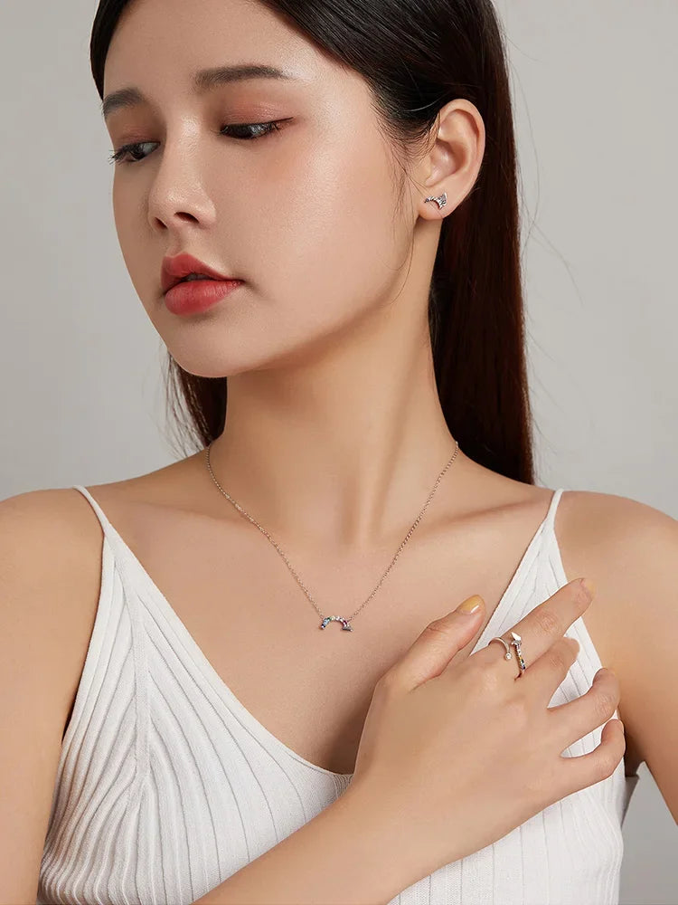 This enchanting 925 Sterling Silver Rainbow Butterfly Ring is a captivating piece that adds a touch of whimsy and elegance to any outfit. Crafted from high-quality sterling silver, this adjustable open ring features a vibrant butterfly adorned with colorful zircon stones.