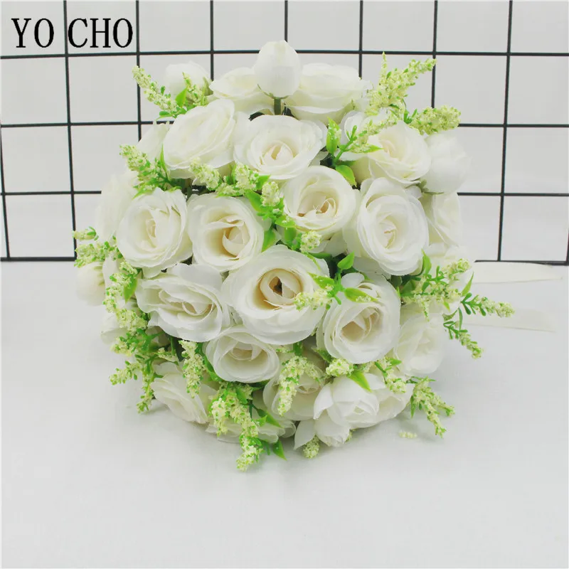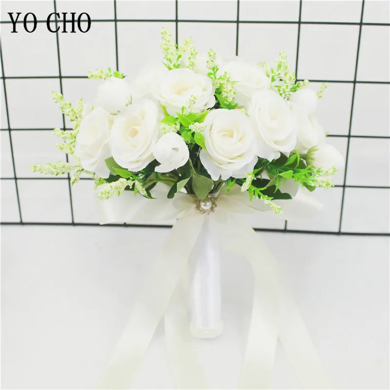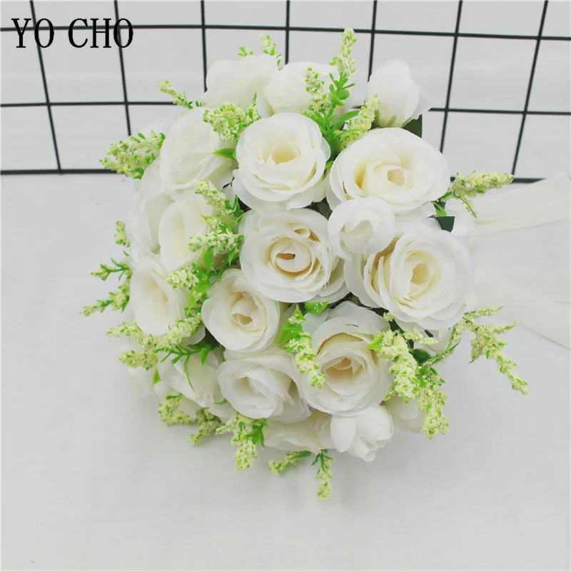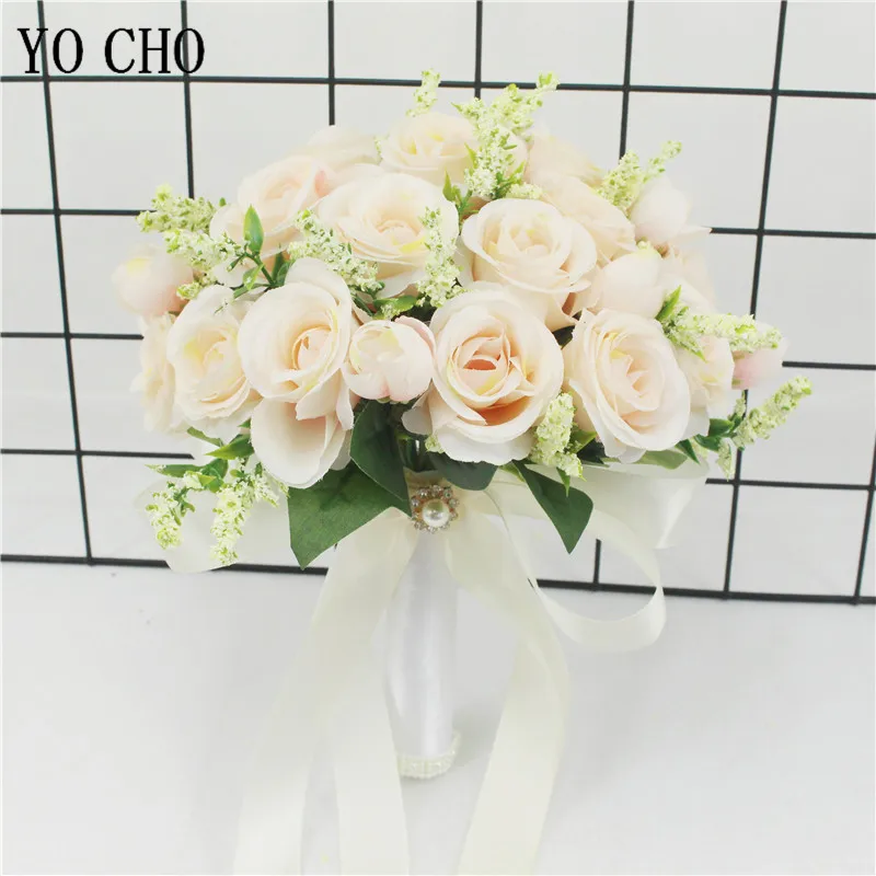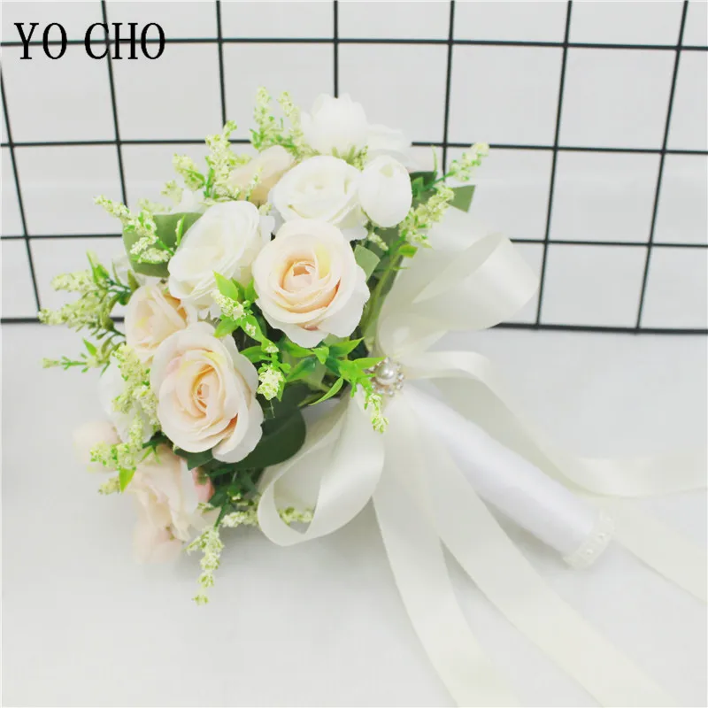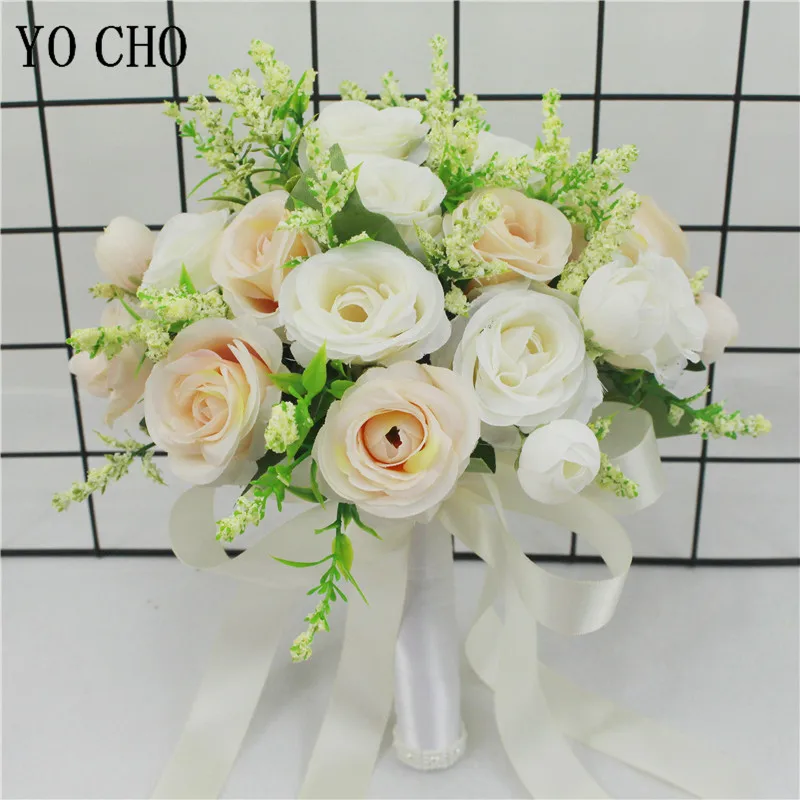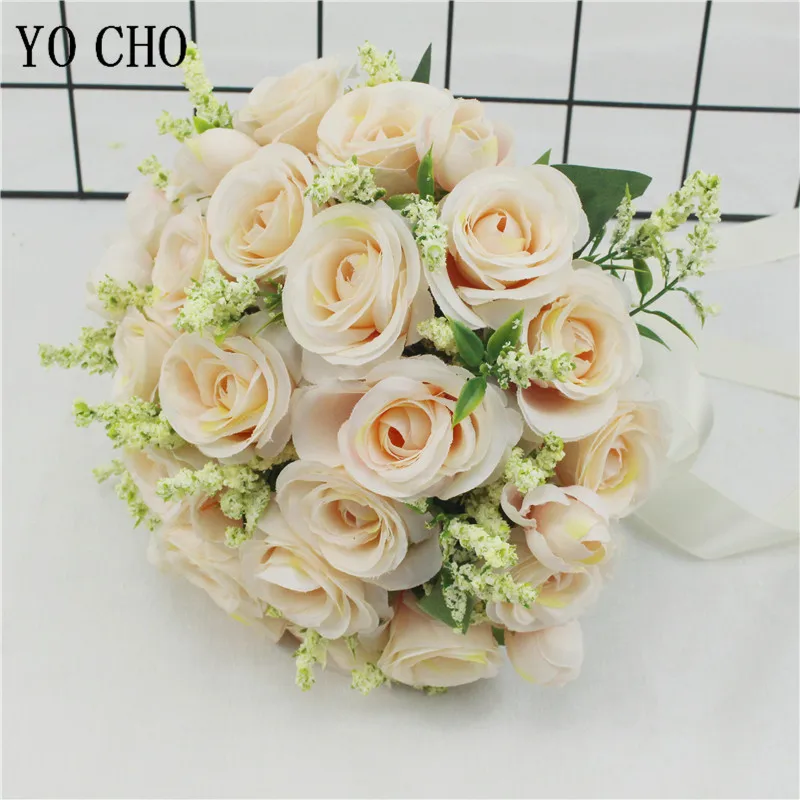 Bridal Bridesmaid Wedding Bouquet White Pink Champagne Artificial Rose Bride Holding Flowers Mariage Decor Wedding Accessories
