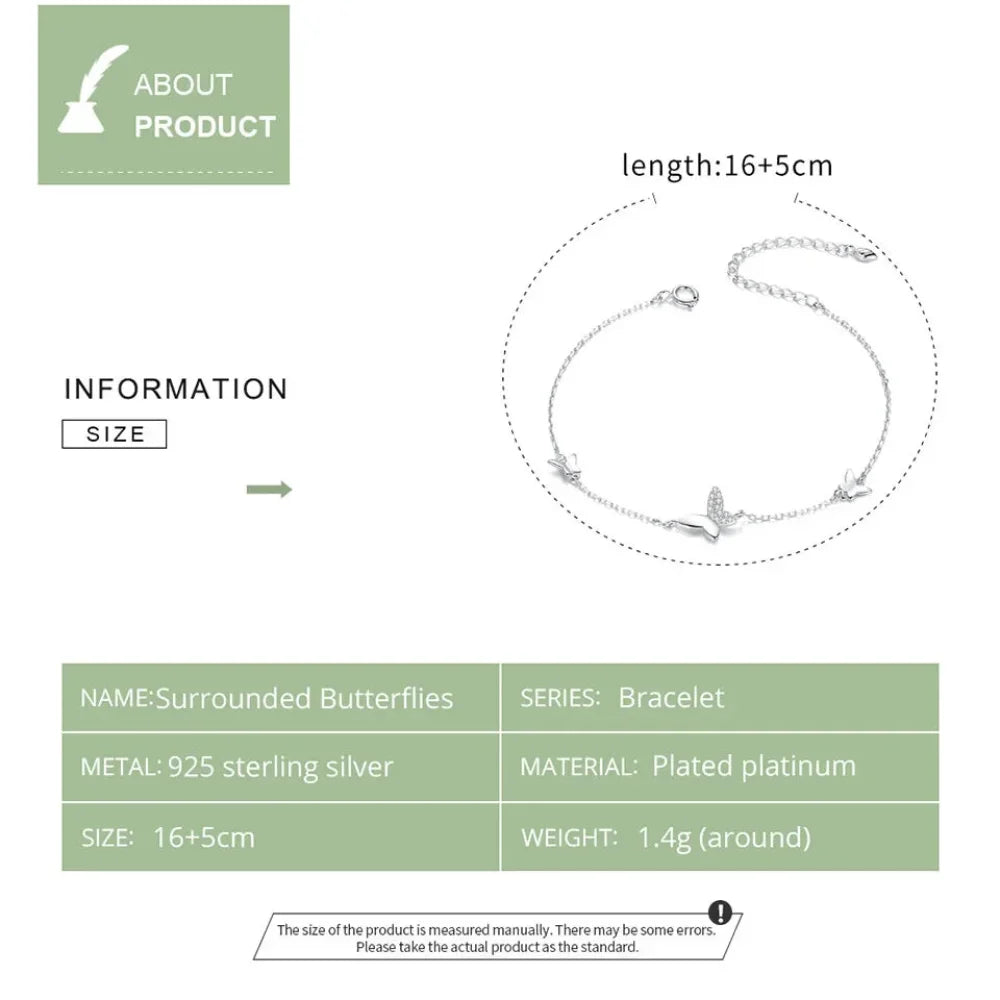 Search Keywords: Sterling Silver Bracelet, Butterfly Bracelet, Lobster Clasp Bracelet, Silver jewelry, Gift for Women