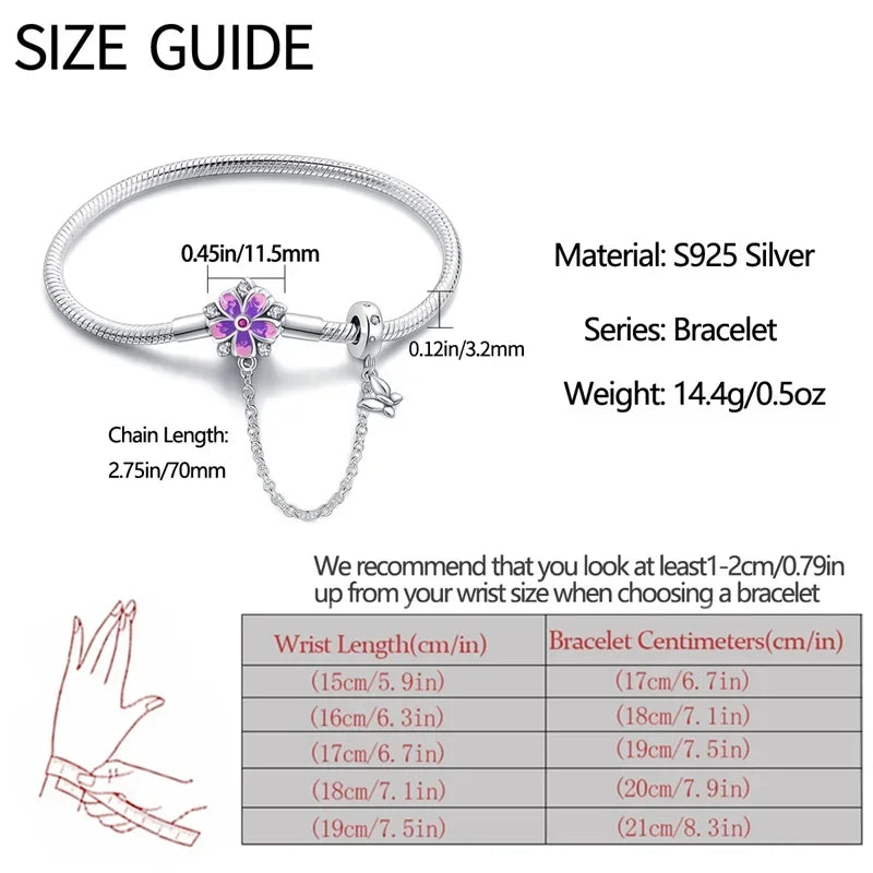 Add a touch of nature's beauty to your wrist with this captivating charm bracelet. Featuring a delicate flower charm adorned with vibrant enamel and sparkling cubic zirconia, this bracelet is a true work of art. The secure safety chain ensures your precious jewelry stays in place, while the versatile design allows you to add your favorite charms. Crafted from high-quality 925 sterling silver, this bracelet is a perfect blend of elegance and whimsy.