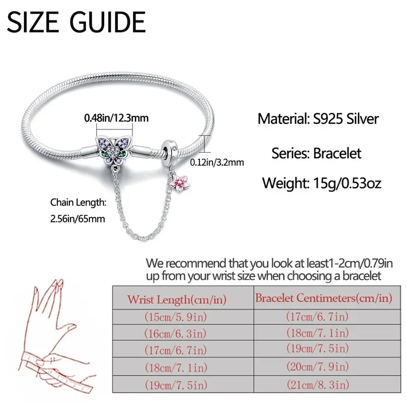Ethereal Butterfly Sterling Silver Charm Bracelet With Safety Chain