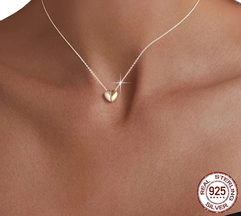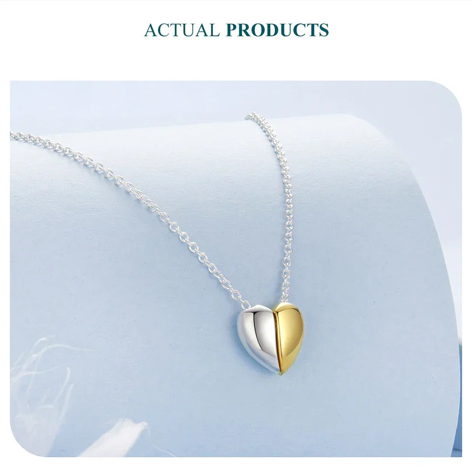 Gold Plated Heart Pendant Necklace For Women - 925 Sterling Silver Couple Heart Jewelry
