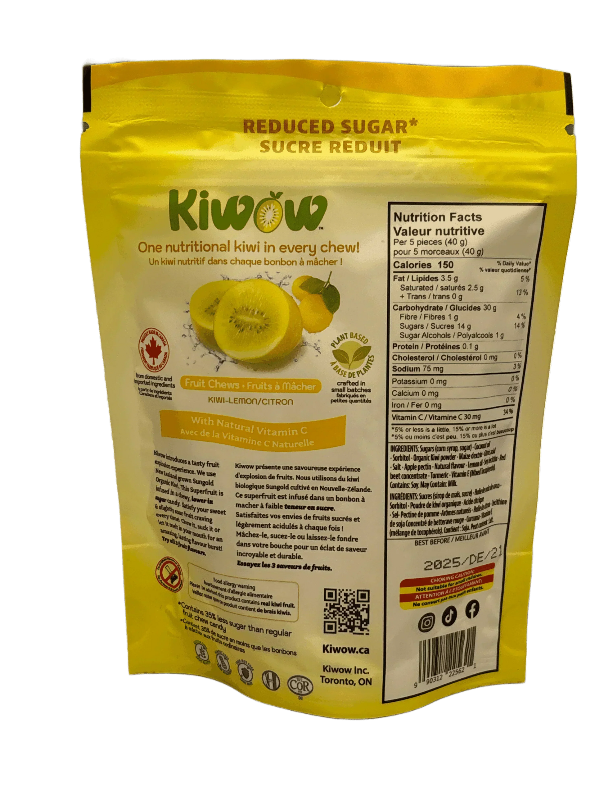 Experience a burst of tangy excitement with KIWOW Kiwi Lemon, the perfect blend of bold kiwi and zesty lemon in every chewy bite. Made with real organic gold kiwi from New Zealand, this fruit chew is a naturally refreshing treat with a citrus twist.
