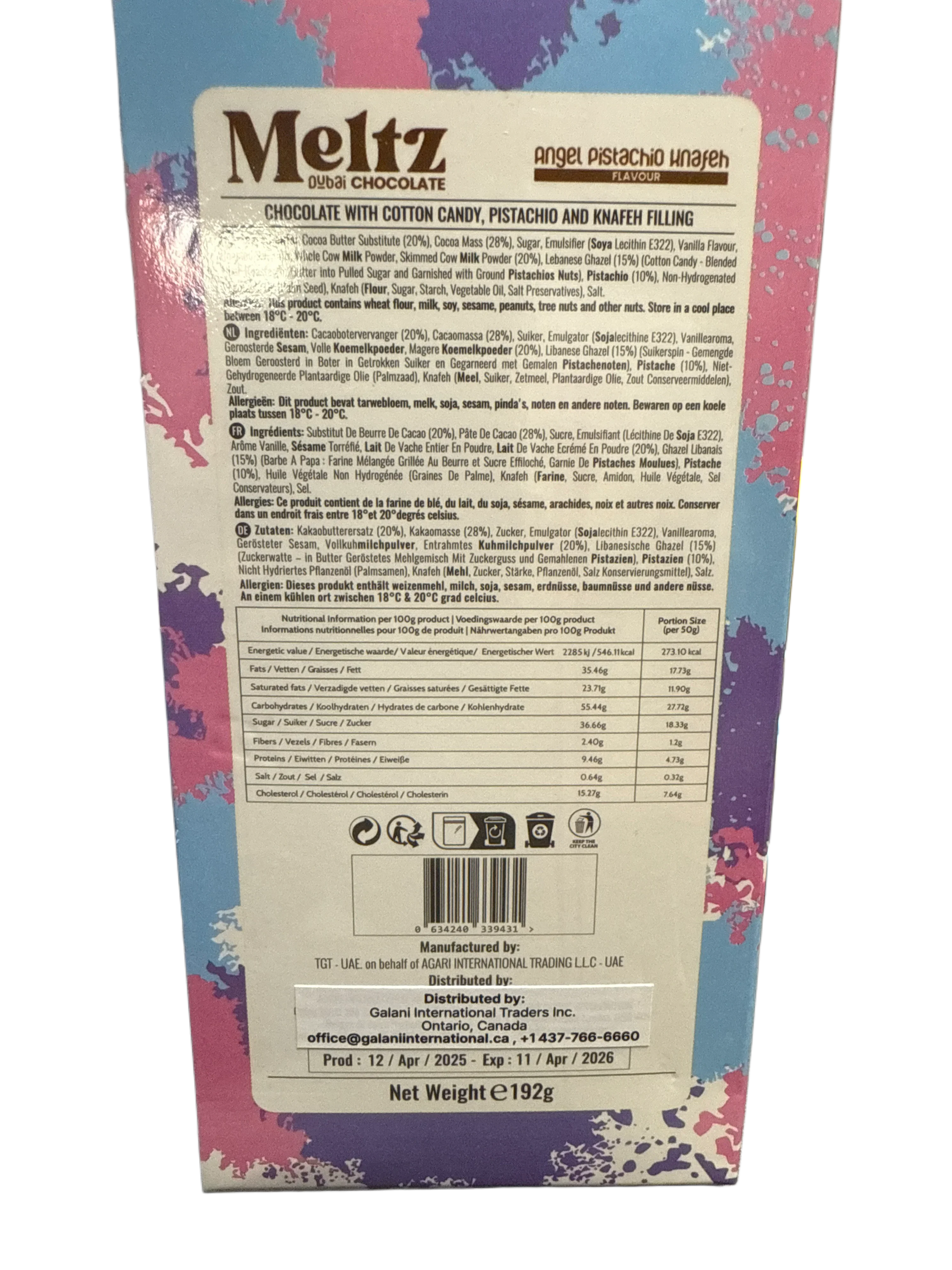 Meltz Dubai Chocolate Angel Pistachio Knafeh Flavour 192G - Dubai Edition