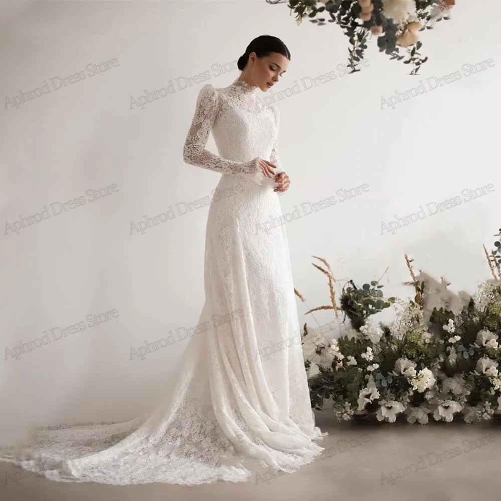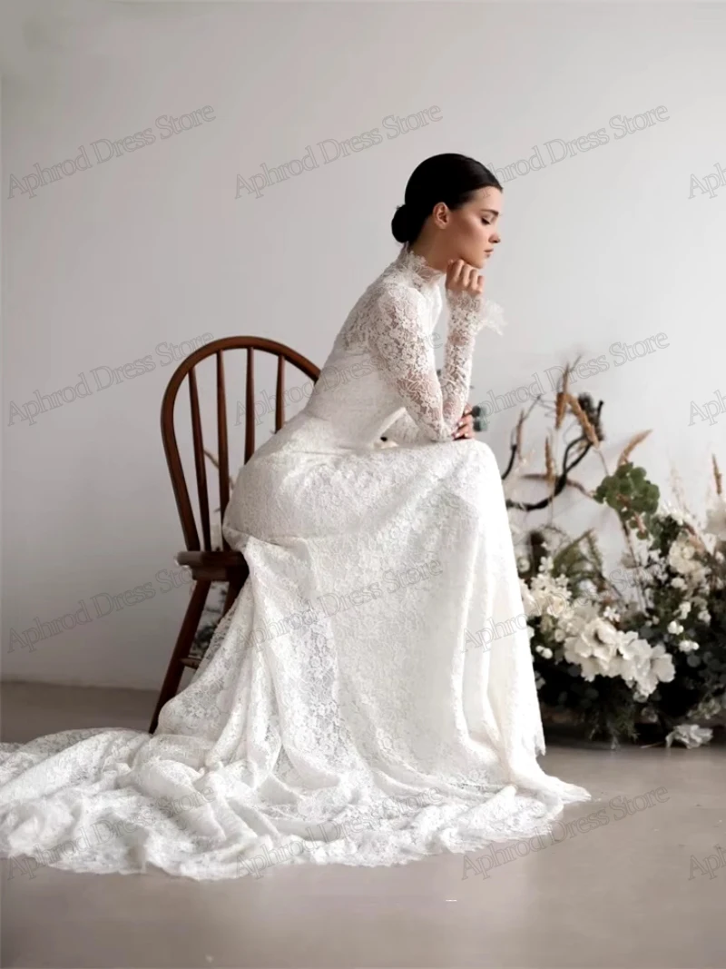 Modern Wedding Dresses Elegant Bridal Gowns Lace Tiered Modest Robes Full Sleeves Sweep Train Vestidos De Novia Customized 2025