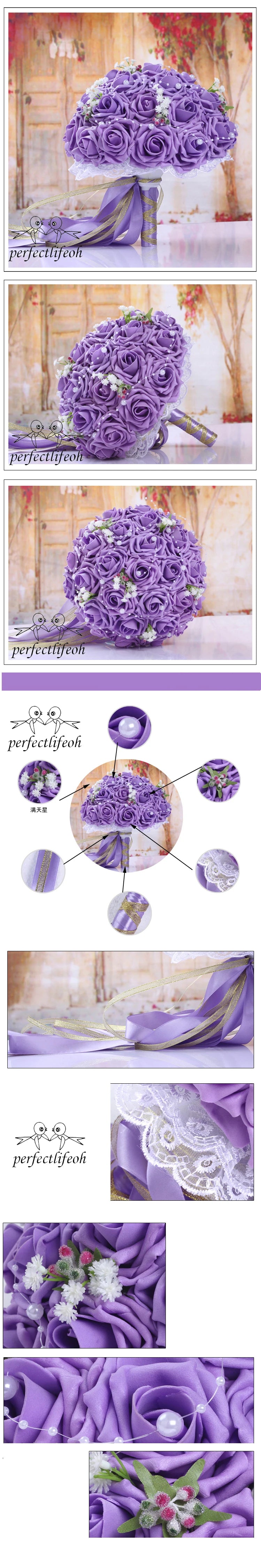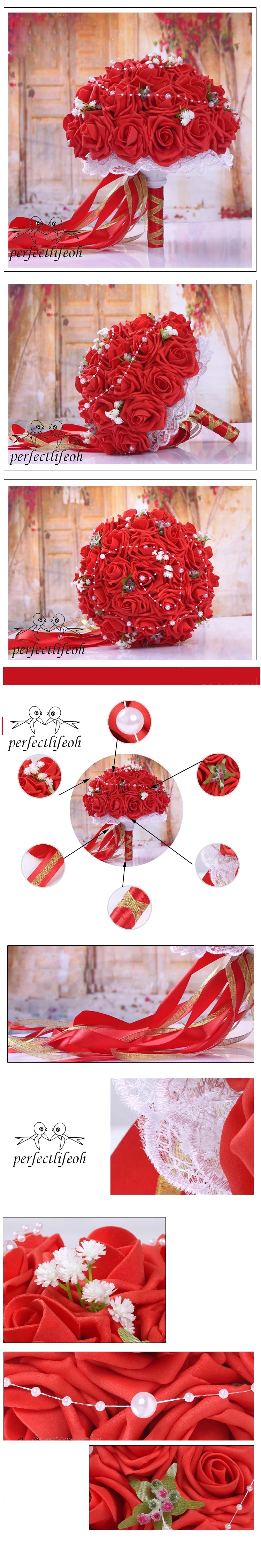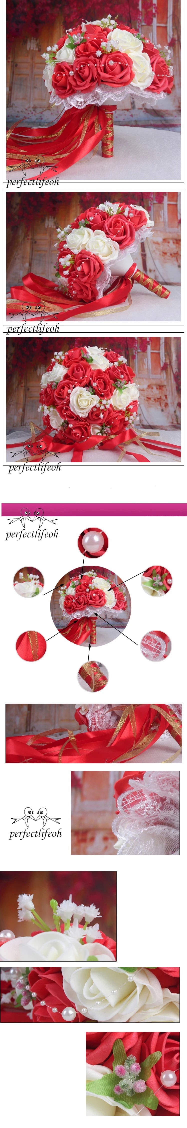 Perfectlifeoh Burgundy Wedding Bouquet Pink/Red/White/Royal Blue Bridal Bridesmaid Artificial Flower Rose Bride