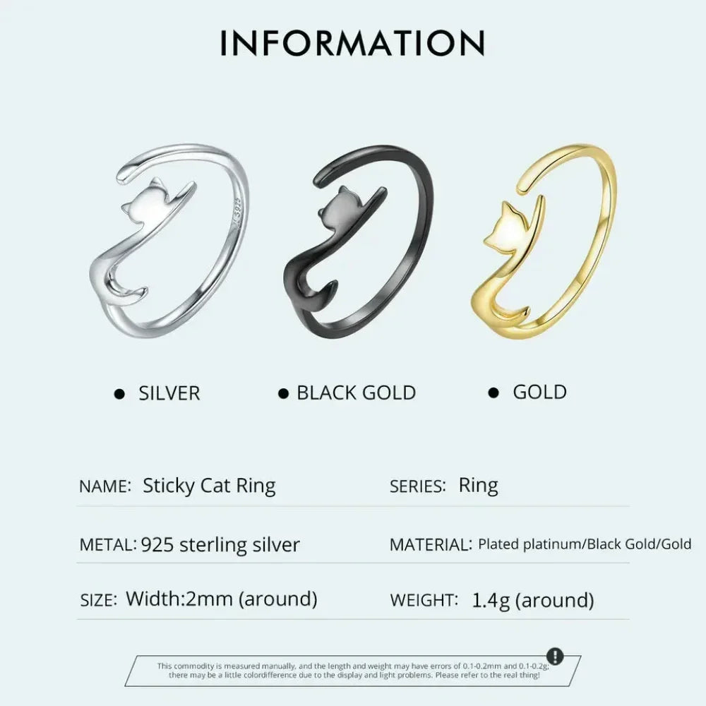 Search Keywords: Cat Ring, Sterling Silver Ring, Adjustable Ring, Animal jewelry, Cute jewelry