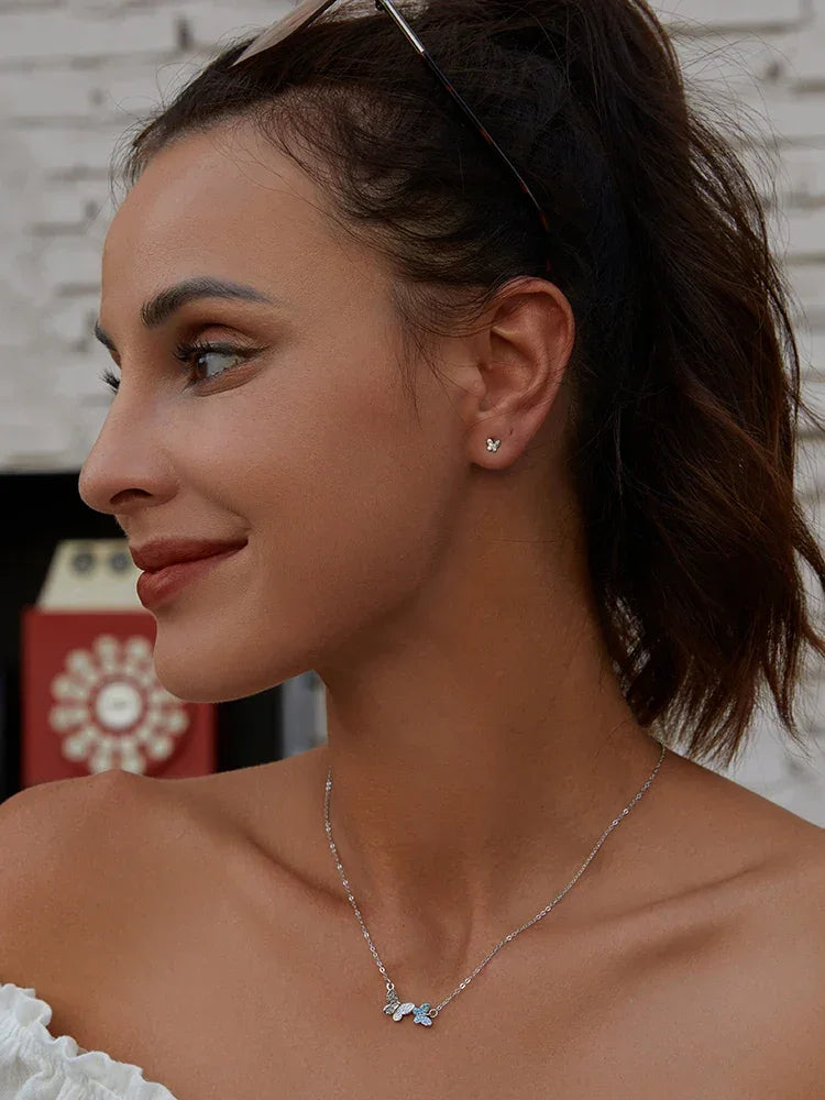 Soar with Style: Blue Zircon Korean Style Sterling Silver Butterfly Necklace