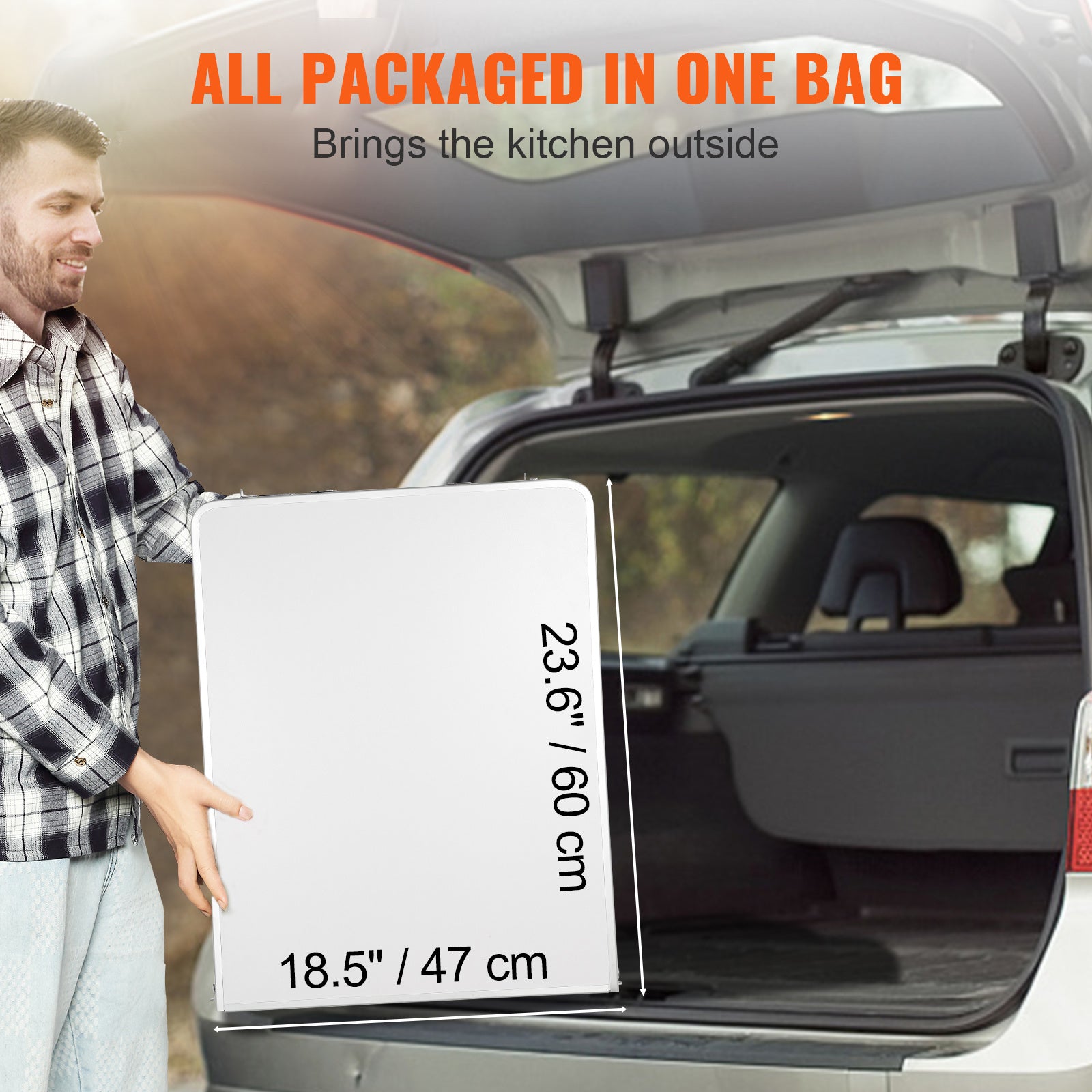 VEVOR Camping Kitchen Table, Quick Set-up Folding Camping Table, 3 Adjustable Heights, MDF Camping Table, Ideal For Outdoor Picnics, BBQs, Camping, RV Traveling