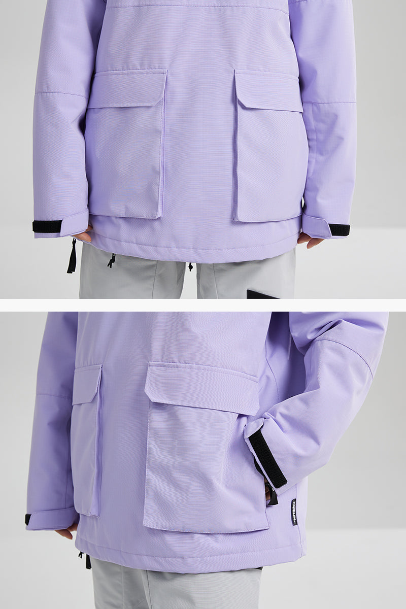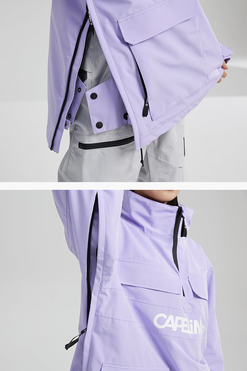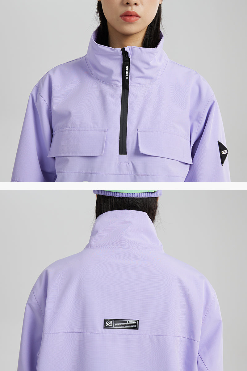 Cool, Fit, Fashion. This pullover yenna snowboard jacket features extra-short half-open zippers and two chest pockets. 100% synthetic padding + TPU laminated fabric provide high waterproofness and keep you warm.
